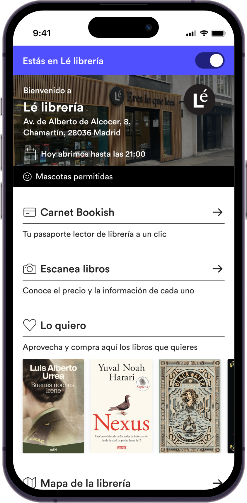 Con la app de Bookish tendrás tu biblioteca virtual organizada, estarás al tanto de lo nuevo de tus autores favoritos y nunca de faltarán recomendaciones de lectura.